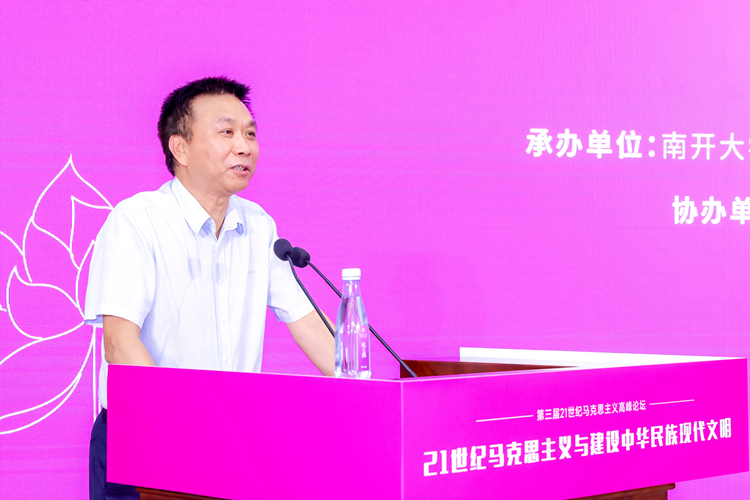 汇聚全国理论之声 共担新时代文化使命 ![]() 南开新闻网讯(记者 李梦楚 摄影 宗琪琪)6月29日,第三届21世纪马克思主义高峰论坛在南开大学八里台校区省身楼报告厅举行,全国知名学者齐聚南开,深入学习领会习近平文化思想,围绕“21世纪马克思主义与建设中华民族现代文明”这一主题进行交流研讨,积极推动重大理论问题与实践问题研究走向深入。 ![]() 第十四届全国人大常委会委员、第十四届全国人民代表大会社会建设委员会主任委员杨振武,中国辩证唯物主义研究会会长、中国社会科学院马克思主义学院院长、南开大学·中国社会科学院大学21世纪马克思主义研究院院长、中国社会科学院大学教授、南开大学终身教授王伟光,天津市政协原主席、天津市关心下一代工作委员会党委书记、主任邢元敏,天津市委副书记、市委教育工委书记陈辐宽,天津市社会科学界联合会主席、南开大学党委原书记薛进文,南开大学党委书记杨庆山,第十四届全国人大常委会财政经济委员会副主任委员、南开大学校长陈雨露,中国社会科学院大学校长张政文,中国社会科学院马克思主义研究院院长辛向阳,北京大学哲学系博雅讲席教授、马克思主义哲学研究中心、中国特色社会主义研究中心主任丰子义,南开大学原副校长、讲席教授、中国政府发展联合研究中心主任朱光磊,南开大学原副校长、马克思主义学院院长王新生,南京大学法学院教授、中国法律史学会执行会长张仁善,南开大学哲学院院长、北京大学哲学系教授、儒学研究院副院长干春松,南开大学历史学院、生态文明研究院教授、南开大学杰出教授王利华等出席论坛。陈雨露主持论坛开幕式。 本次论坛由南开大学、中国社会科学院大学主办,南开大学·中国社会科学院大学21世纪马克思主义研究院联合南开大学马克思主义学院、历史学院、法学院、周恩来政府管理学院承办,中国辩证唯物主义研究会、中国社会科学出版社、马克思主义基本原理概论国家教材建设重点研究基地协办,来自中国社会科学院、中央党校以及北京大学、清华大学、中国人民大学、北京师范大学、中国政法大学、吉林大学、复旦大学、上海交通大学、南京大学、山东大学等知名高校的专家学者与会研讨。 ![]() 杨振武在致辞中表示,本届大会的主题具有重要的理论价值和现实意义。建设中华民族现代文明,离不开马克思主义的指导和中国共产党的领导,离不开推进中国式现代化,离不开中华优秀传统文化和以爱国主义为核心的民族精神,离不开全面依法治国建设中国特色社会主义法治体系。希望与会专家在深入交流研讨中,进一步激发真知灼见,为建设中华民族现代文明、推进中国式现代化贡献理论力量。 ![]() 陈辐宽代表天津市委、市政府向嘉宾到来表示欢迎。他说,天津深入学习贯彻习近平总书记视察天津重要讲话精神,全市广大干部群众正以饱满的精神状态和奋进的实干担当,努力书写文化强国和中华民族现代文明建设的天津篇章,将更加自觉肩负起新的文化使命,为加快构建中国特色哲学社会科学学科体系、学术体系、话语体系作出新的更大贡献。 ![]() 杨庆山在致辞中指出,举办马克思主义高峰论坛对于深入学习贯彻习近平新时代中国特色社会主义思想,推进党的创新理论体系化学理化,不断开辟马克思主义中国化时代化新境界具有重要意义。希望通过本次论坛,能够融通马克思主义理论资源、中华优秀传统文化资源和国外哲学社会科学资源,为建设中华民族现代文明不断激发新思路、取得新成绩、开辟新境界。 ![]() 张政文在致辞中说,本次论坛的举办将为21 世纪马克思主义与建设中华民族现代文明的相关研究宣传阐释搭建平台,为学界相互交流架起有效沟通桥梁,进一步推动习近平文化思想的学科体系、学术体系和话语体系建设。期待在论坛的推动下,相关领域的研究不断取得新成果,为在新的历史起点上更好担负起新的文化使命、建设中华民族现代文明作出新的贡献。 ![]() 陈雨露在主持论坛开幕式时强调,论坛作为南开大学与中国社会科学院大学打造的重要学术品牌,是学习宣传阐释习近平新时代中国特色社会主义思想,不断开辟当代中国马克思主义发展新境界的重要举措。今后,双方将持续把21世纪马克思主义研究院建设成为智慧高地和学术高峰,为建设中华民族现代文明这一重大时代课题,持续做好人才培养工作不断贡献力量。 ![]() 王伟光作了题为 “以习近平文化思想为指导,加快构建‘中华民族’现代文明新形态”的主旨报告。他从以唯物史观和马克思主义文明观为理论依据,科学理解把握关于建设中华民族现代文明的重要思想,中华民族现代文明是中国特色社会主义全面发展的人类文明新形态,以及建设中华民族现代文明的实现路径三个方面展开阐释,全面分析了习近平总书记关于建设中华民族现代文明重要论述的重要意义。 丰子义、朱光磊、张仁善、王利华、干春松分别围绕“关于‘第二个结合’的理解与把握” “现阶段中国阶层格局变化的十大新特点” “中国司法传统及其现代性反思” “生态文明何以成为中华民族的坚定抉择?” “文化吸引力和文化领导力”作主题报告。王新生主持论坛主题报告环节。 ![]() 丰子义通过分析现代文明和现代社会发展的关系、契合与结合的关系,以及“