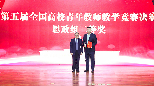 In the national teaching competition for young teachers in colleges and universities, Xiao Guangwen, a young teacher from the School of Marxism in Nankai University, won the second prize in the ideological and political category. Li Jing awarded him certificates and trophies.