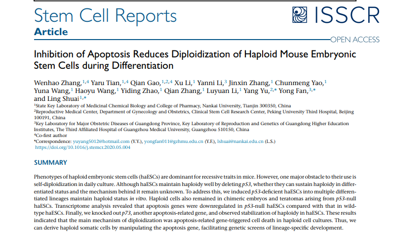 Nankai University’s Research Group Analyzes a New Mechanism of Diploidization of Haploid Mouse Embryonic Stem Cells
