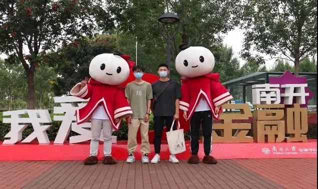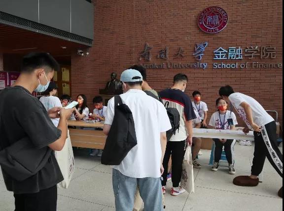 报到现场还特别设立了金融学院吉祥物、标语牌等打卡点,并配置志愿者进行拍照,为新生留下进入南开园的首张纪念照。