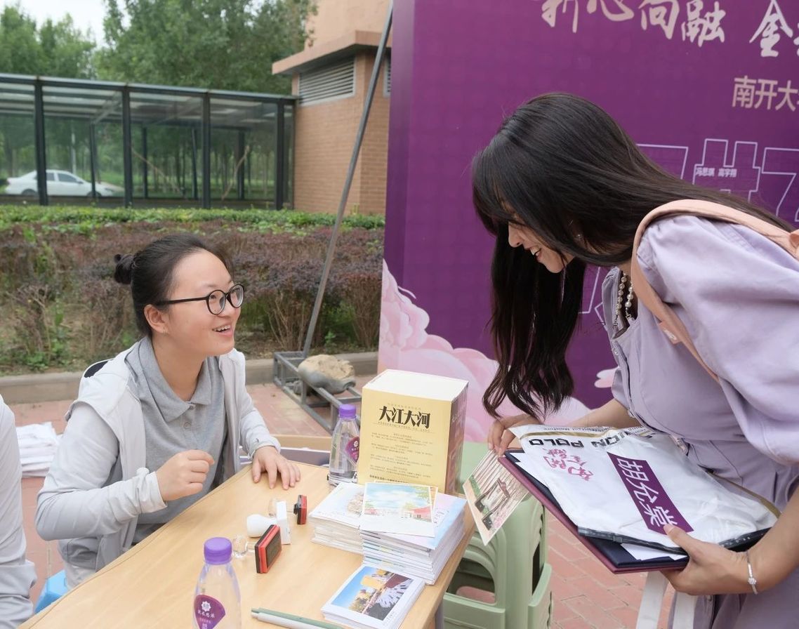 在金融学院的特色打卡处,与小金小融的合影框、我爱南开金融等立体标识旁引来众多学生和家长留影留念,共同记录下入学南开园的情景;“筑梦金朝,融绘未来” ,依托二级心理辅导站及“园艺助心”天井活动区域,同学们领取鲜花盆栽种子,在风铃信纸上认真写下对研究生学习生活的期望,并将明信片悬挂于“时光线”上;“金”彩印记特色活动中,金融学院特色印章也吸引了众多学子驻足停留;“书香金融”图书角前,南开大学校长陈雨露推荐的《大江大河》与金融学院院长范小云推荐的《金融与好的社会》摆在新生同学们面前,鼓励同学们广泛阅读、拓展视野、严谨治学。一系列特色迎新活动让刚刚踏入校门的同学们倍感喜悦、温暖与向往。