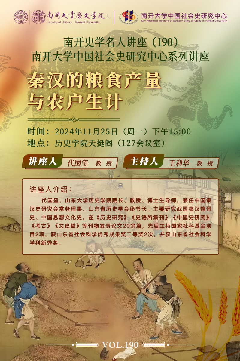 南开史学名人讲座(190)预告
