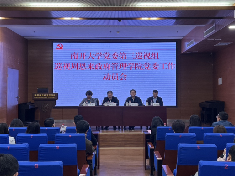 近日,南开大学第十届党委第五轮巡视数学科学学院党委、商学院党委、电子信息与光学工程学院党委、新闻与传播学院党委、周恩来政府管理学院党委、哲学院党委工作进驻动员会召开。校党委副书记、纪委书记、国家监委驻南开大学监察专员赵美蓉,党委副书记牛文利,党委常委、副校长白承铭,党委副书记曲明军分别出席会议并讲话。