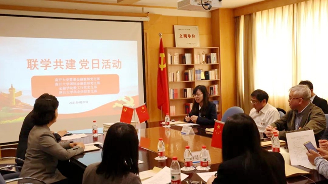 南开新闻网讯(通讯员 段月姣)为深入开展党史学习教育,探索在“党史+学科+实践”教育模式中传承红色文化,4月27日,金融学院师生支部联合建行大学华北学院党支部开展主题党日活动。数量金融教师党支部、国际金融教师党支部、行政党支部党员代表,2019级金融2班和2020级金融国际学术精英特色班学生代表参加活动。