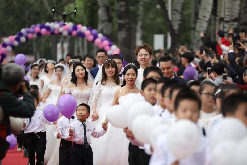 新京报快讯(记者 李丽霞)记者从南开大学获悉,10月6日,作为南开大学建校100周年系列活动之一“缘定南开 百年好合”南开大学第二届集体婚礼在八里台校区举行。曾于1997年至2018年在南开大学就读过的百余名校友与爱人一起,从国内12个省市重返南开校园,以集体婚礼的形式喜迎南开大学建校100周年。
