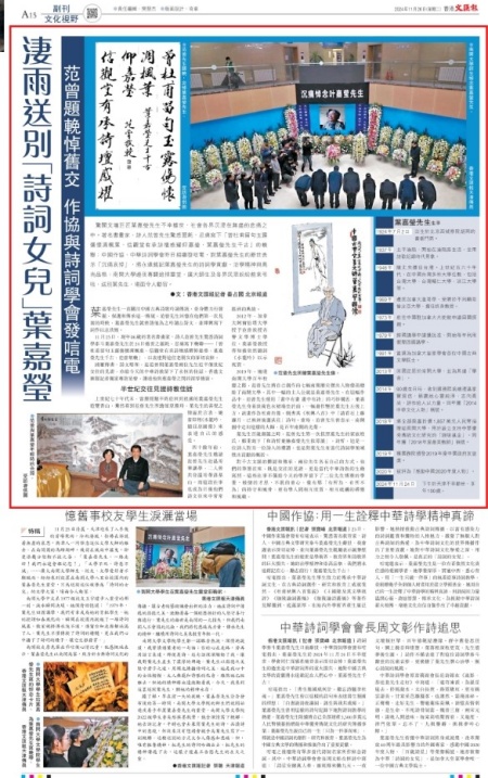 范曾題輓悼舊交 作協與詩詞學會發唁電